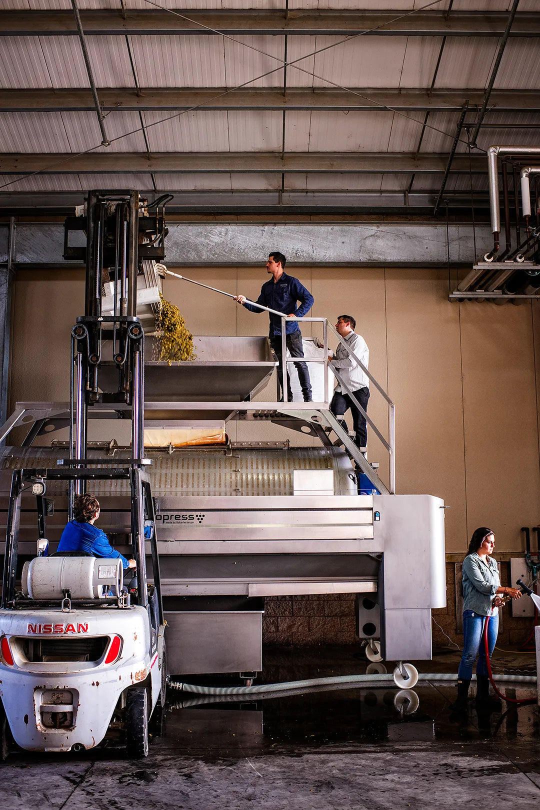 At our facility we have a crush pad and traditional wine bladder press. When processing grapes, the juice is pressed from the fruit then moves into fermentation tanks.