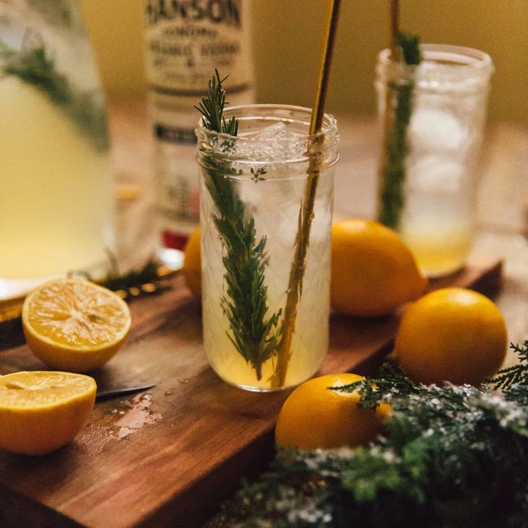 The Bumblebee is a delightful twist on the classic Bees Knees cocktail. Mix Hanson Organic Meyer Lemon Vodka, honey syrup, and lemon juice with muddled rosemary in a shaking tin. Serve in a Collins glass and top with club soda. Garnish with a rosemary sprig.