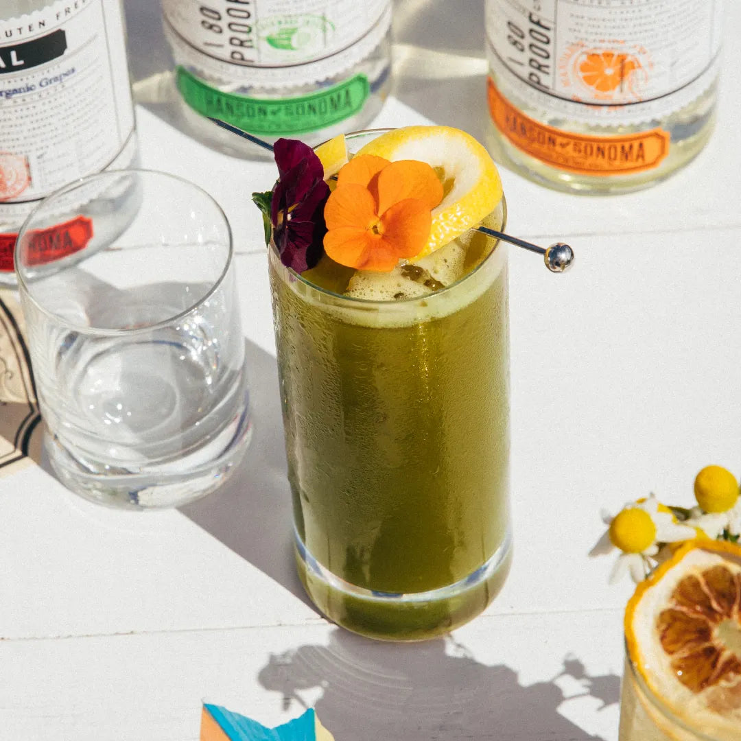 The Green Goddess mixes Hanson’s Original Vodka, matcha, and yuzu for a refreshing, unique cocktail. Agave syrup sweetens, while elderflower tonic adds a floral touch. Garnish with a lemon wheel for color and flavor enhancement. This sophisticated, approachable drink offers a hint of Japanese influence.